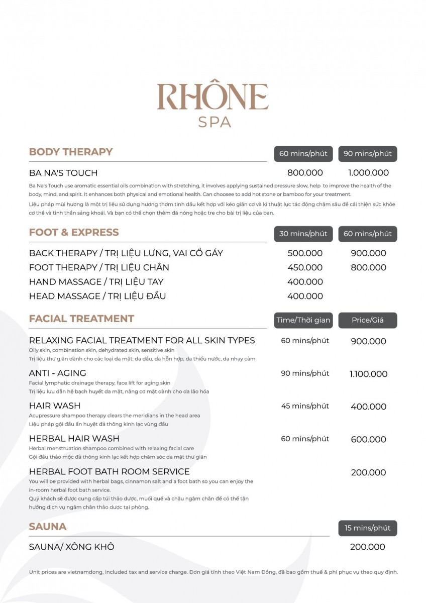 Tucked away in a serene heaven, far from the vibrant pulse of Sun World Ba Na Hills, Rhône Spa offers a sanctuary for a complete rejuvenation. Inhale deeply, release your burdens, and find renewed energy with our nurturing treatments – the perfect culmination to your day of exploring the charming French Village.